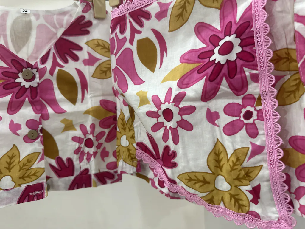 - Dreamy Floral Print: Oversized pink and golden blooms on a creamy background for a fresh, modern look